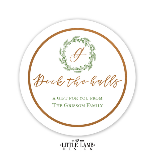Wreath Deck the Halls Gift Sticker